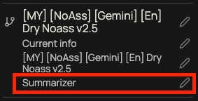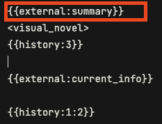 Внутри промпта начнет работать переменная {{external:summary}}, в которую попадет последний саммари
