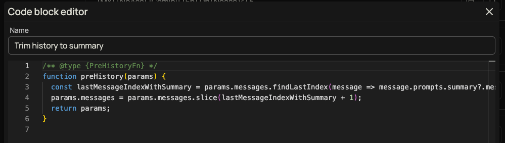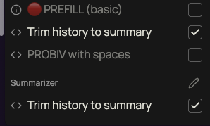 - Убедиться, что в рычагах включены код-блоки "Trim history to summary"
